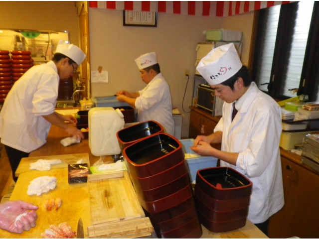- 若い見習いの方も頑張って握って下さいます。