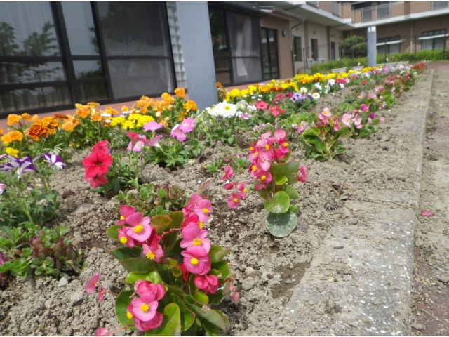小牧苑の食堂から見える庭に、花壇があります。