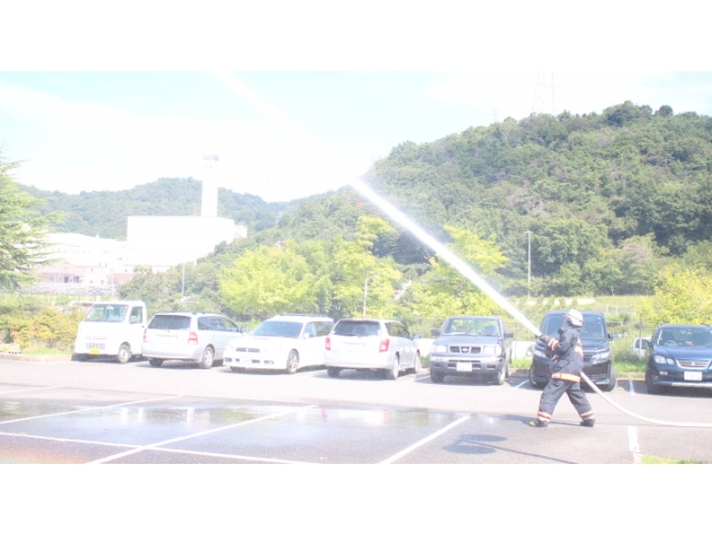 放水訓練です。間近に感じる放水の凄さに圧倒されます。