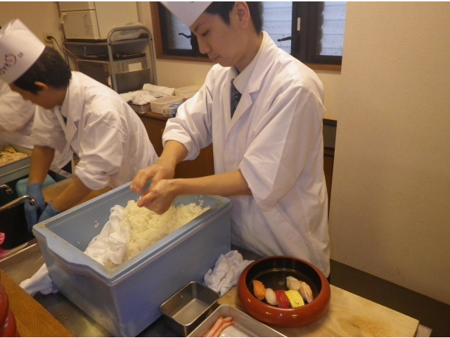 本日小牧苑では、地元の老舗お寿司屋さんの「八郎鮨」さん