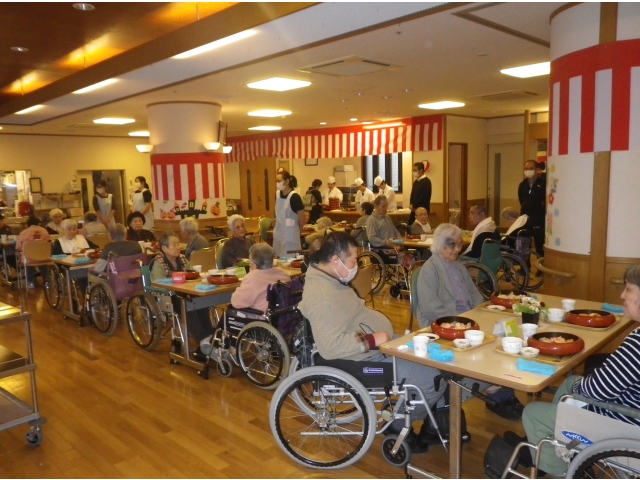 年に1度のお寿司を好きなだけ食べられる行事に、利用者様