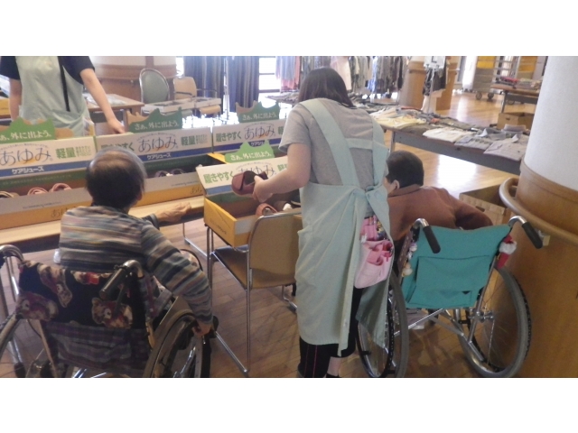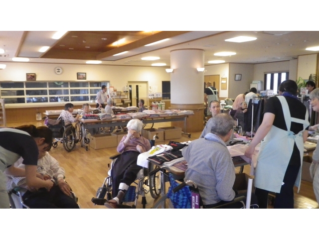 夏物衣料販売展示会がありました。仲良し3人組でわいわい楽しむ利用者さま、職員と共にじっくり選ばれる利用者さま…今回の夏物衣料販売展示会も 大繁盛 でした。