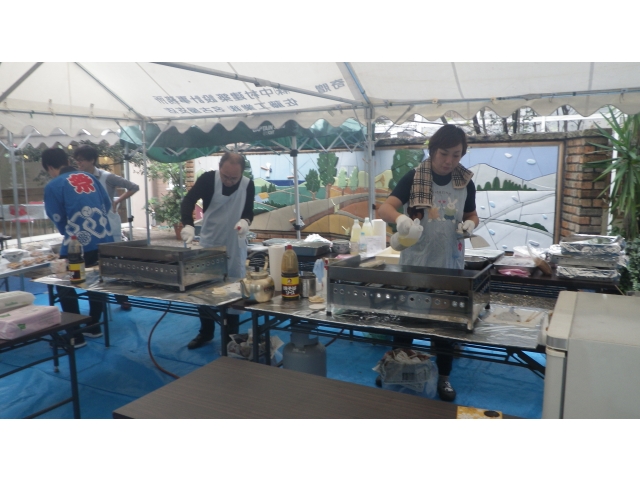 模擬店では五目ご飯・さんまの塩焼き・焼きそば・豚汁・食後のコーヒーやケーキ・プリン等をご用意しました。