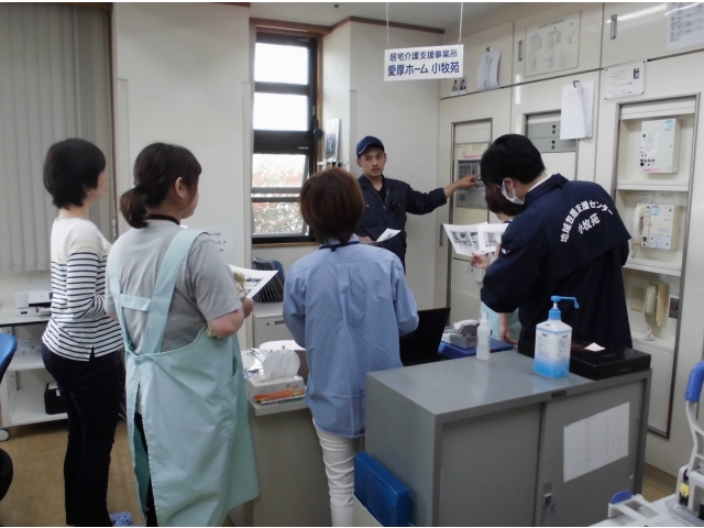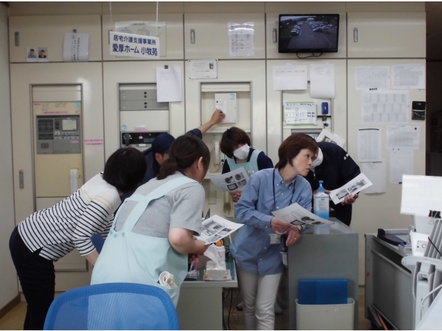 利用者の皆さんを安全に非難誘導できるよう定期的に非難訓練を行い、「もしも」に備えたいと思います。