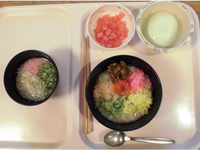おやつは甘夏ベースの七夕ゼリーとカルピスウォーターを提供しました。特にスイカは今年初提供のため、皆さん夏らしいわね~と喜んでくださいました♪