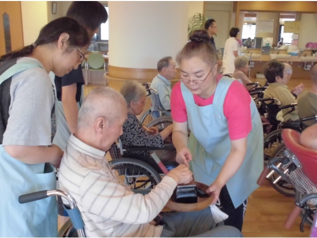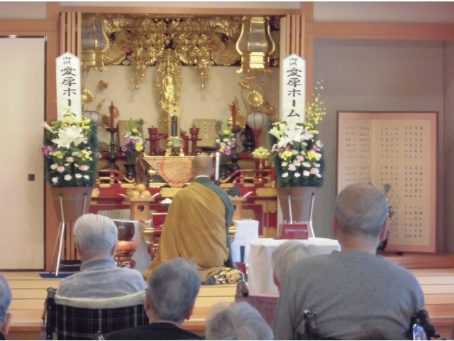 9月14日(金)小牧苑では秋の彼岸法要を行いました。お経を唱えて頂き、故人をしのび、職員と利用者の皆さんでお焼香をしました。その後は、利用者さんの分までこころを込めて、職員がお墓参りをさせて頂きました。