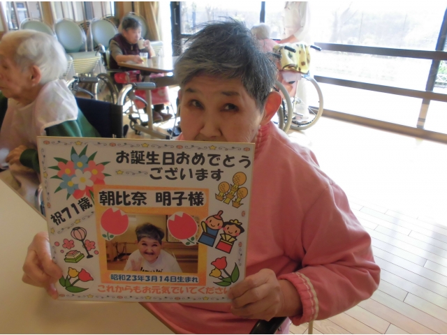 利用者の皆さまや職員で『Happy Birth Day』を歌いながら、誕生者をお祝いしました。