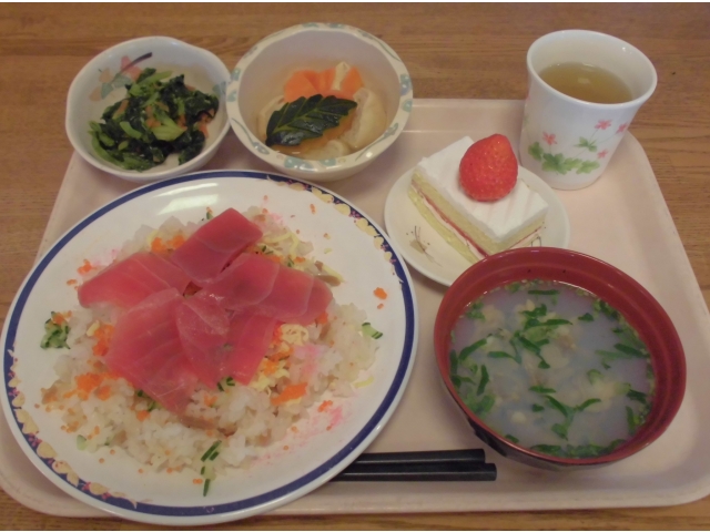 普段、あまり食事が進まない方もちらし寿司は、ペロリと召し上がって頂けました。