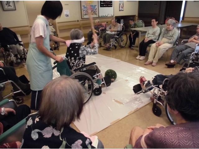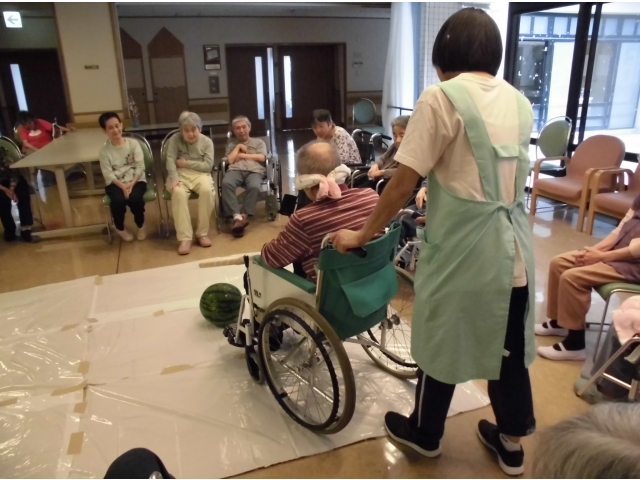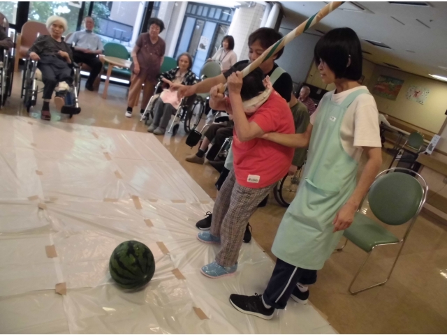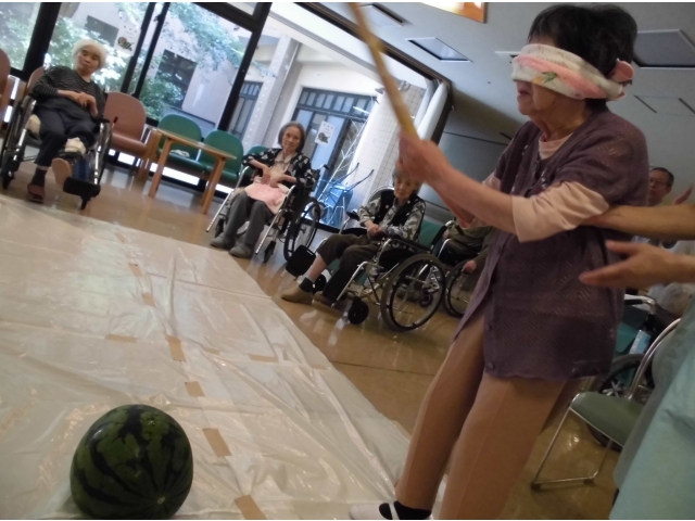 すいかはサイコロ状に切って、皆さんに提供しました。甘くて瑞々しいすいか…皆さん嬉しそうに召し上がっておられました。