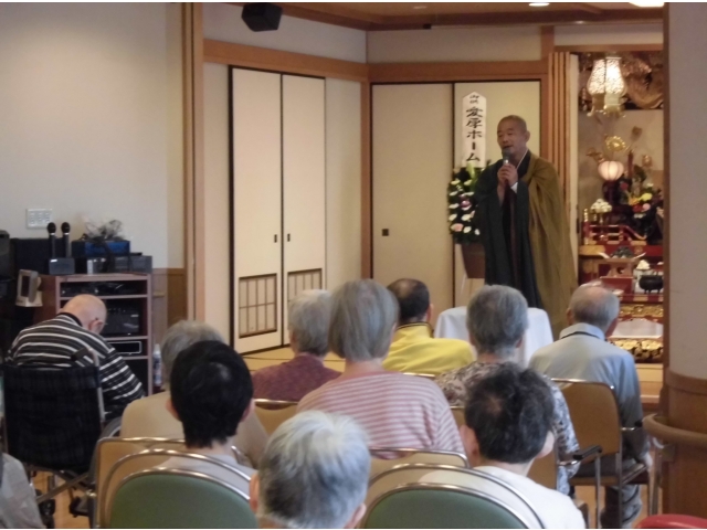 9月13日(金)小牧苑では秋の彼岸法要を行いました。お経を唱えて頂き、故人をしのび、職員と利用者の皆さんでお焼香をしました。 その後は、利用者さんの分までこころを込めて、職員がお墓参りをさせて頂きました。