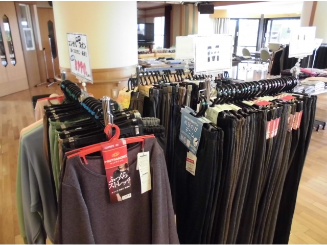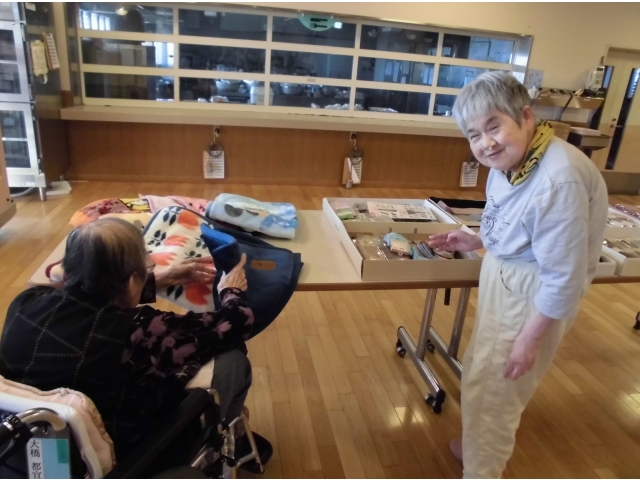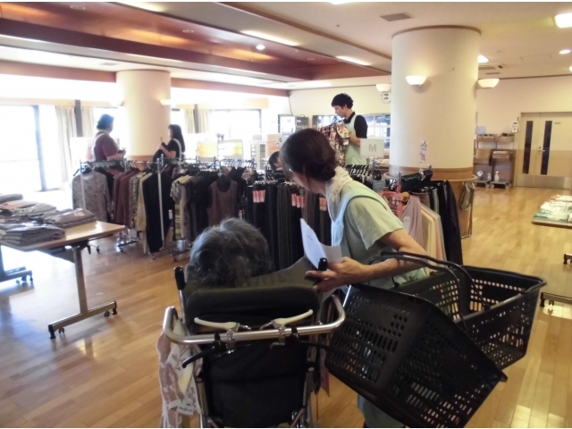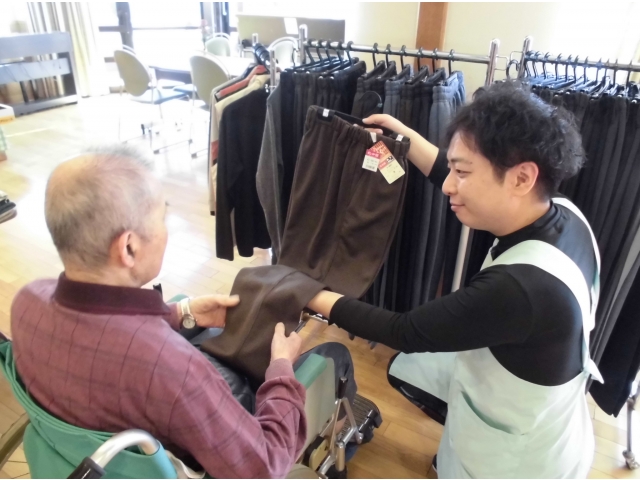 10/9(水)小牧苑では冬物衣料販売を開催しました。 トレーナーをはじめ、裏起毛のズボンなどあたたかい服をたくさん用意していただきました。 仲良しの利用者同士で柄や色の相談をしたり、家族と一緒に買い物をしたり…みなさま思い思いに楽しまれておられました。