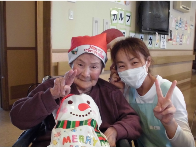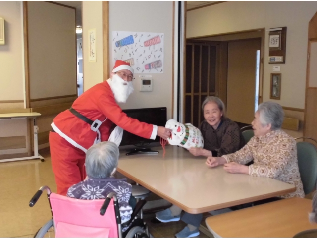 午前中はサンタに扮した苑長が、利用者の皆さんのもとへご挨拶。
