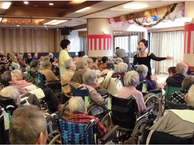午後からは藤唱会による歌謡ショーが開催されました。「星影のワルツ」や「青い山脈」など利用者の皆さんになじみ深い曲ばかり。