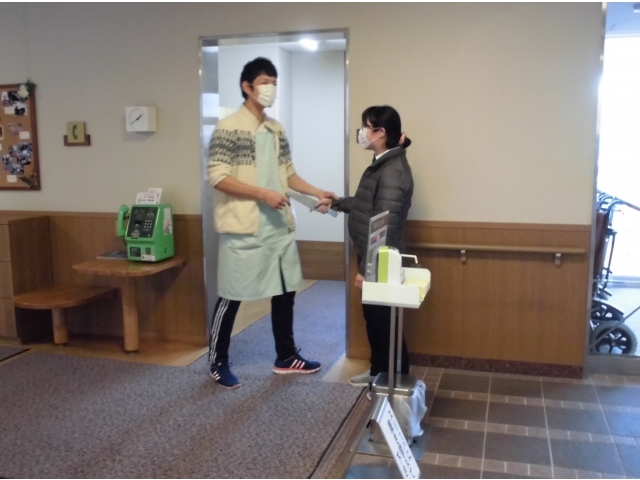 (1)来客者に対して、両手を広げたくらいの距離を持って対応する。