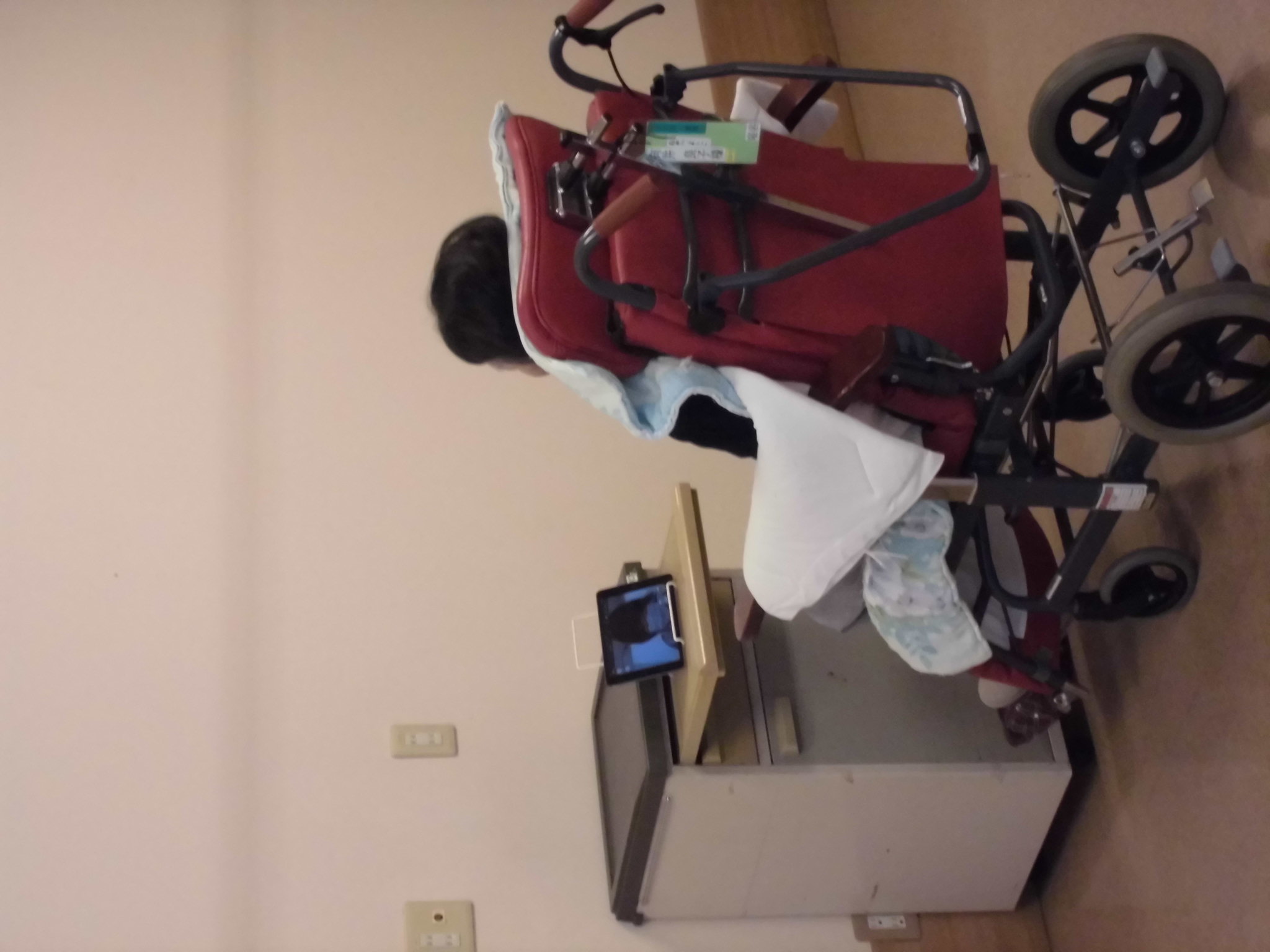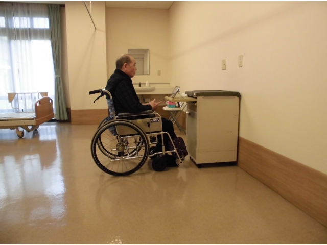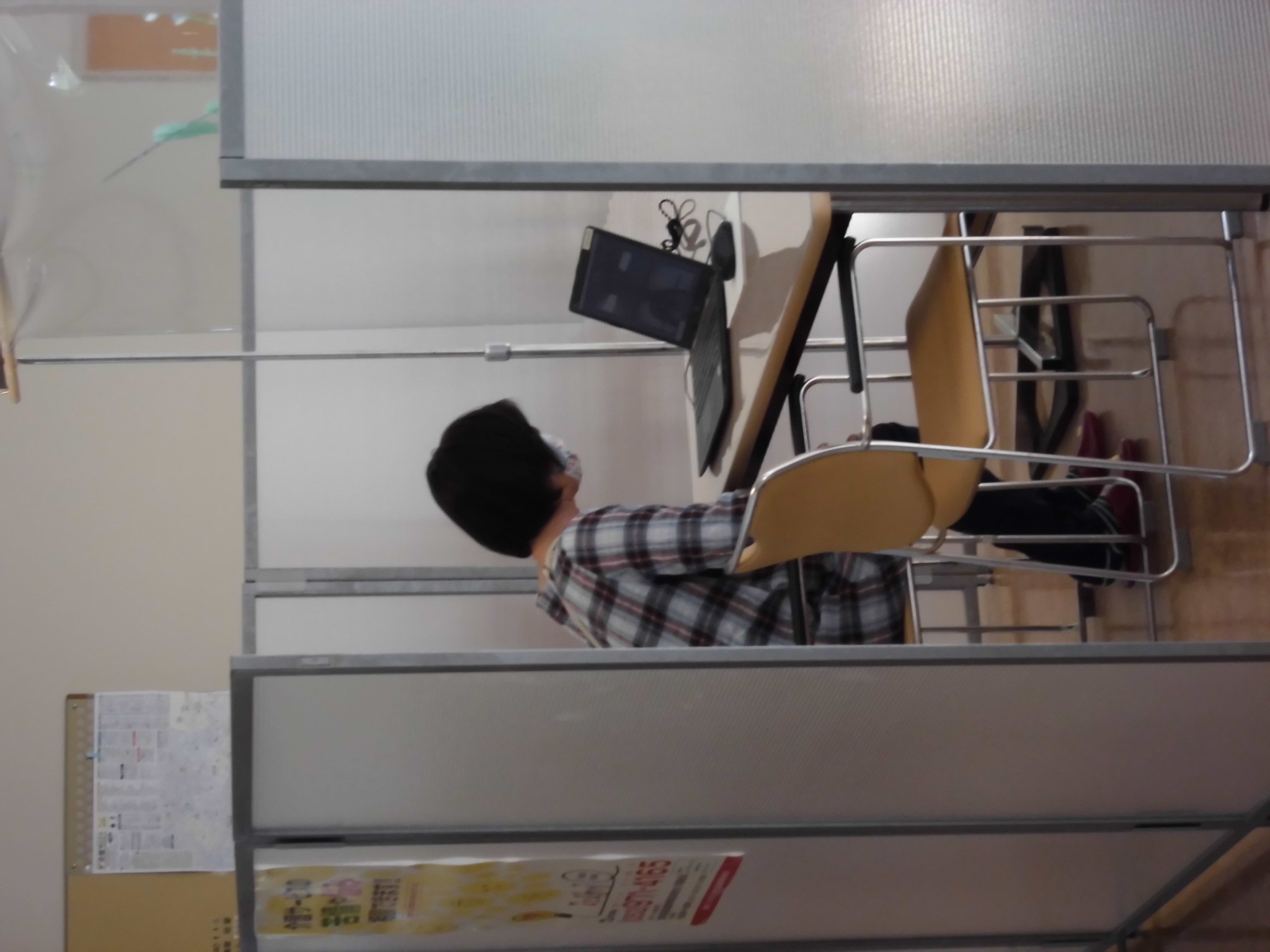 5/20(水)から始まりましたオンライン面会の様子です。ご家族様は、玄関ロビーの一角で、パソコンにて行い、ご利用者様は、苑内の1室において、タブレットで行います。久々に顔を見て話しをすることができ、喜んでおられる方、元気そうでホッとされている方など、様々な様子でした。