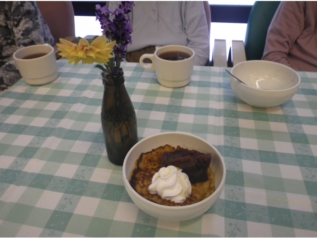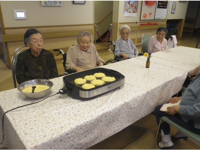 1丁目の利用者様が、茶話会をおこないました!メニューは、あんこ・生クリーム添えのフレンチトーストです!あんこと生クリームは利用者様にお好みの量をのせてもらいました。ホットプレートで焼いたフレンチトーストの甘い匂いが、小牧苑内に広がっていました!!昼食をたくさん食べた後でしたが、皆さんおいしくいただきました。