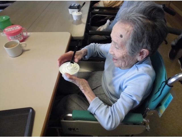 6月17日に、フロアごとで喫茶を行いました。今回のメニューは、ミルクコーヒーと上にクリームののったプリンでした。昼食後でしたが、みなさまペロリと召し上がられていました。