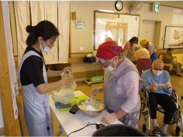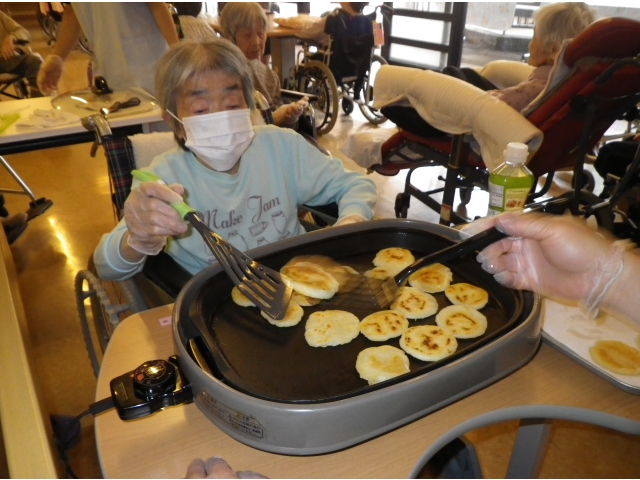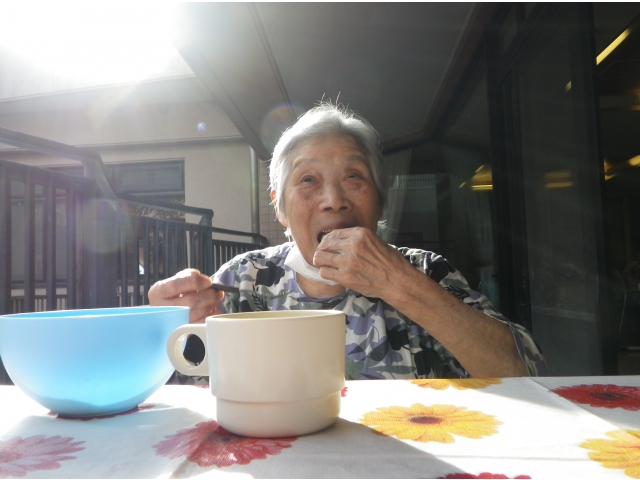 利用者様と職員で作り、完成後はベランダで美味しくいただきました。