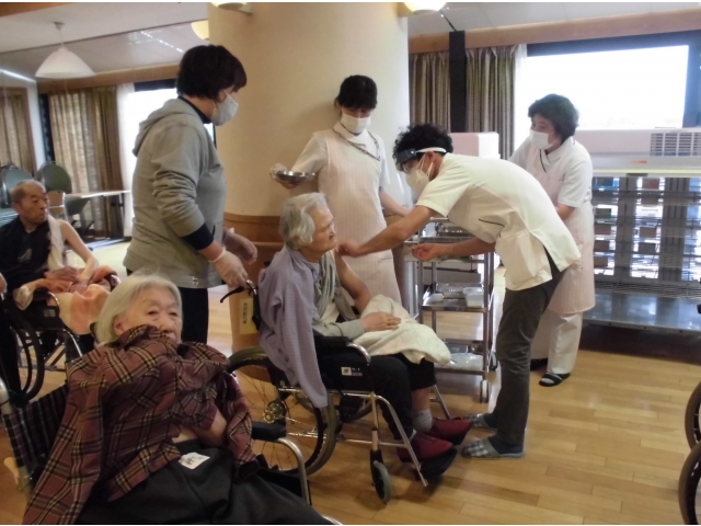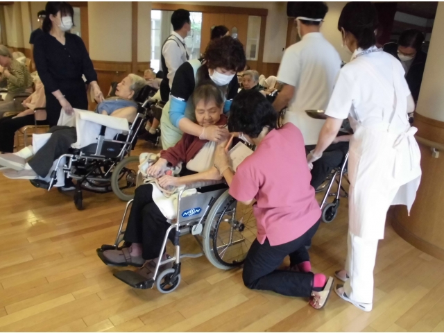 5月12日(水)午後から、利用者様のワクチン接種が始まりました。今日は主に2階の55名の利用者様の接種を行いました。来週も同様に接種を行っていく予定としております。本日接種されました利用者様は、副反応もなく終えることができました。利用者様、及び職員が2回のワクチンを接種すれば一息つけるのかなと思われますが、引き続き気を引き締めて感染対策を行っていきます。