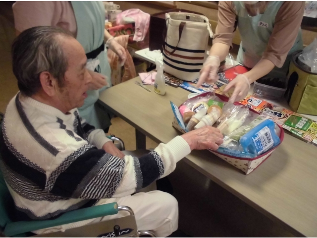 利用者様にお好きなアイスを選んでいただき、引換券と交換しました。