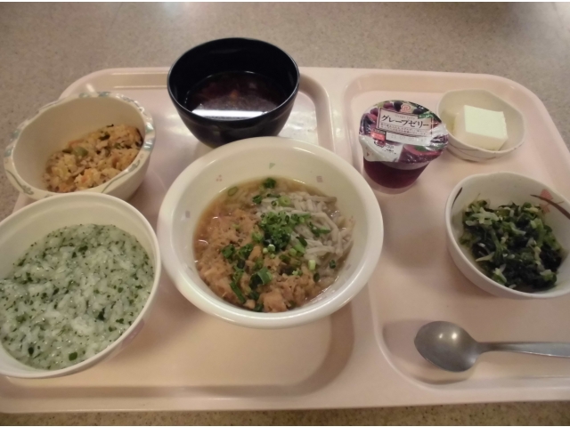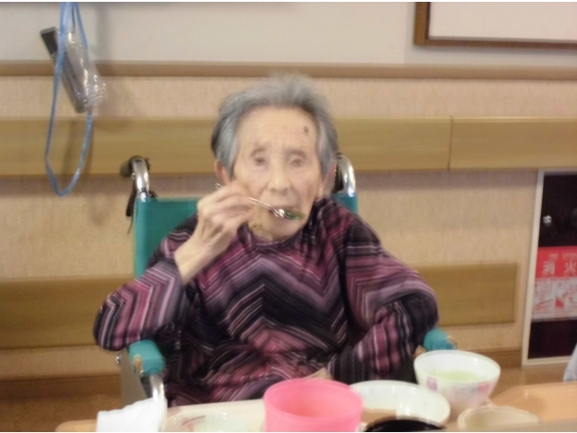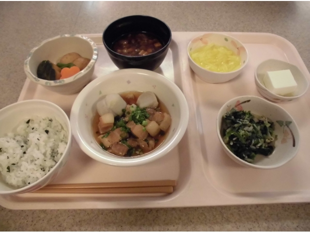 6月4日 6月の誕生会を行いました。今月のメニューは、わかめご飯、豚の角煮、ほうれん草ともやしのナムル、味噌汁、完熟パイン、ケーキです。掲示された献立を見て何日も前から楽しみにされている方もおみえになります。今月の誕生会もとても好評でした。