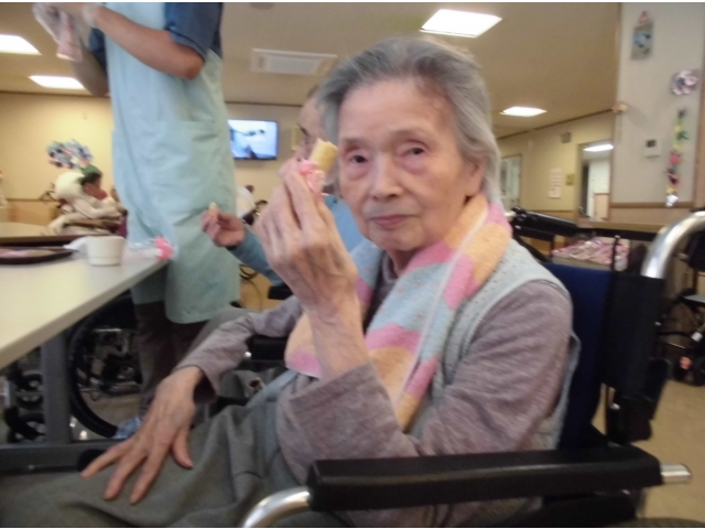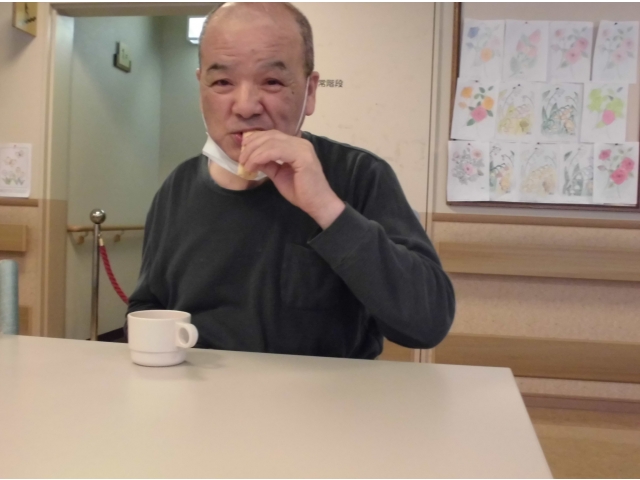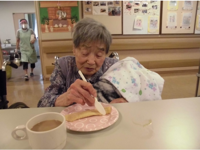 6月23日、フロアごとで喫茶を行いました。今回のメニューは、ミルクたっぷりコーヒーといちごクレープでした。嚥下に配慮されたソフトクレープで、ミキサー食やソフト食の方も含め、美味しく安全に召し上がっていただくことができました。