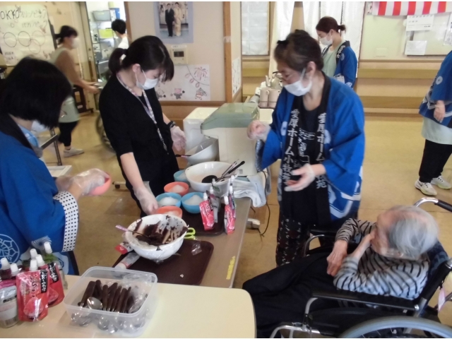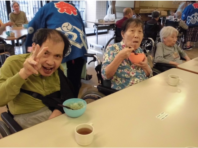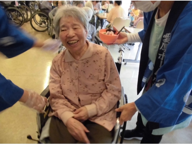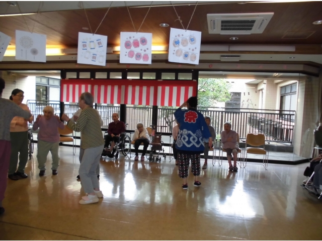 何日も前から、利用者さんから提灯は飾るのか、どこで踊るのか、その後かき氷を食べるのかと踊りの練習をしながら質問が飛び交い、皆さん今日を楽しみにされていたようです。