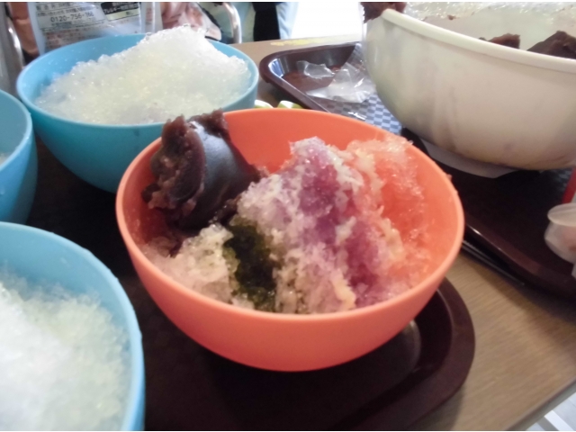 抹茶、いちご、ぶどう、練乳、あんこ…皆さん、どんな味にしようかな?と迷いながら、お気に入りのかき氷を召し上がることができました。中には全部の味をかけて欲しいと言われる方や、おかわりは違う味で、と注文される方も…。