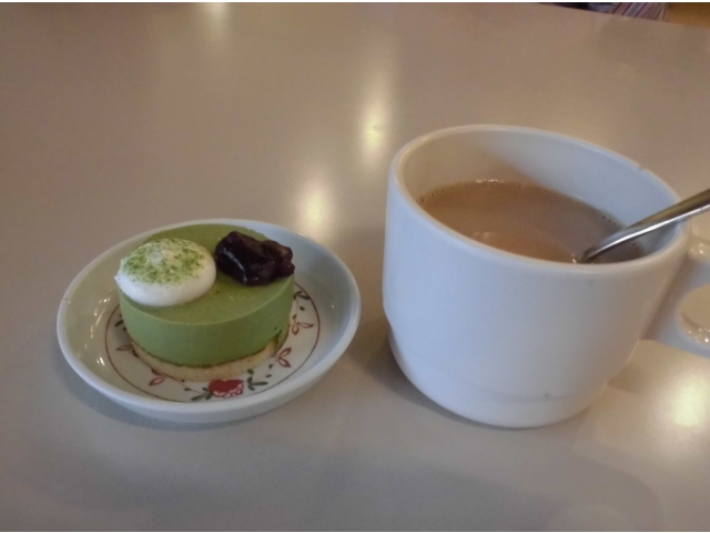 今回の喫茶メニューは、小豆と抹茶のムースケーキとドリップコーヒーです。