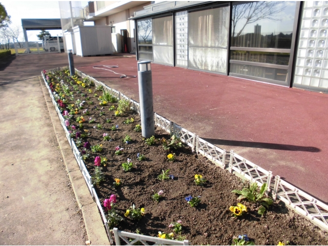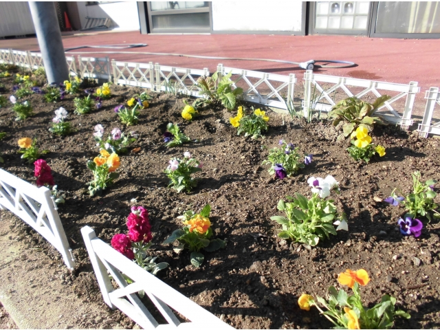 6月に続き、1階食堂前の花壇や2階フロアのベランダのプランター等の花の植え替えを行いました。先週には花壇の雑草等を抜くなどの今日に向けての整備を行っています。来年の春に向けてチューリップの球根も植えました。春が楽しみです。