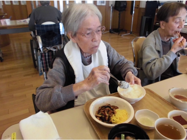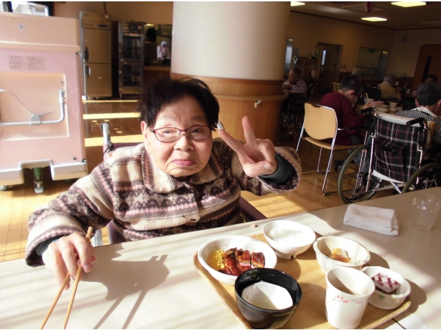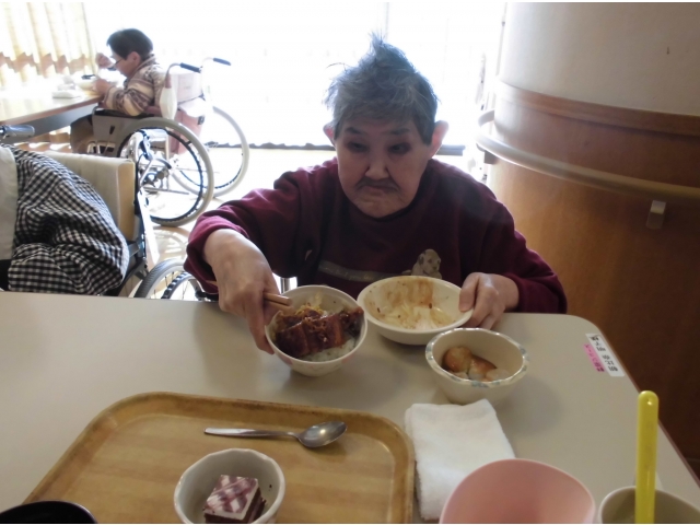 「豪華ですね」「美味しいです」と皆さん鰻に大満足です。そんな中、何人かの利用者様から「里芋のゆずみそかけがとても美味しいです」や「このお漬物美味しい」との声が聞こえてきました。