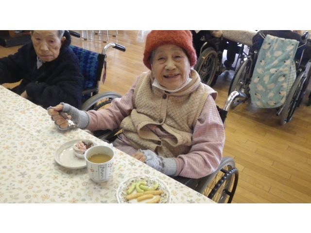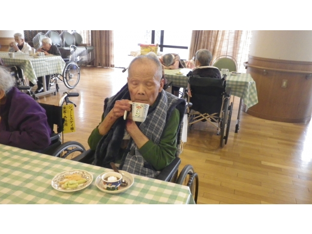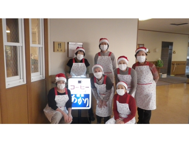 12月22日、ボランティアあかり様のご協力のもと、喫茶あかりを開店しました。本日は、2丁目2と3丁目の方に参加して頂きました。食堂から漂う淹れたてのコーヒーの香り。一口飲んで「はあ~、美味しいですね。ほっとします。」とぽつりとつぶやいた利用者様が印象的でした。優雅で穏やかなひとときが過ごせましたこと嬉しく思います。今年の喫茶は今回で終了となります。来年もよろしくお願いします。