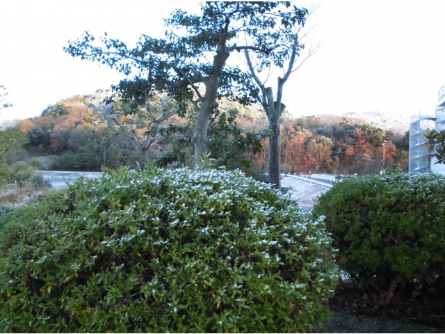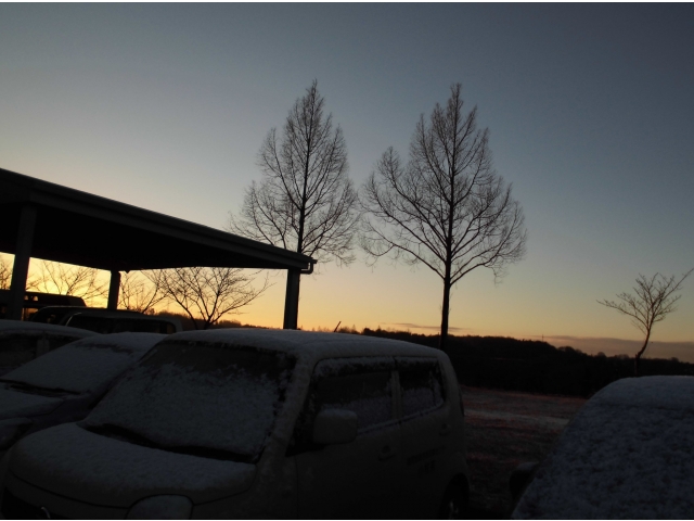 12月28日、小牧苑周辺の朝景色です。公用車や、周りの山にもうっすら雪が積もりました。今年も残りわずかとなりました。本日、一年の感謝の気持ちを込めて職員で大掃除を行い、新年を迎えたいと思います。来年もよろしくお願いします。