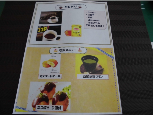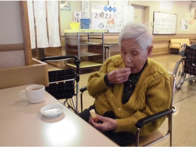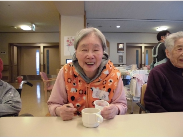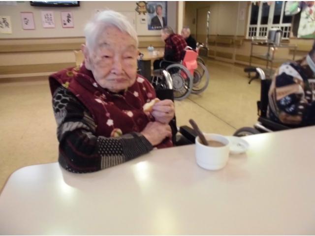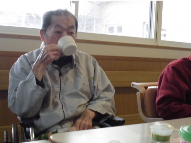 1月26日、2-2と3丁目で喫茶を行いました。今回は、新型コロナウイルスの感染が拡大している状況を鑑み、各フロアで行いました。お好みのおやつや飲み物を召し上がりながら、和やかなひと時を過ごしていただきました。