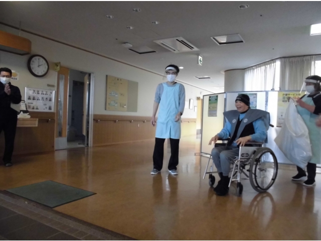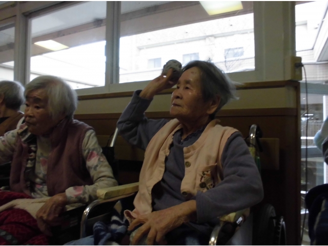 皆さんの手には新聞で作った豆ボールを構えて準備万端です。