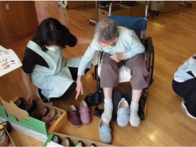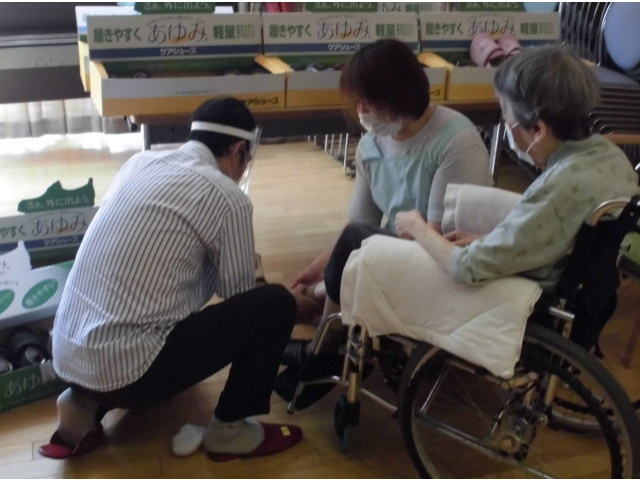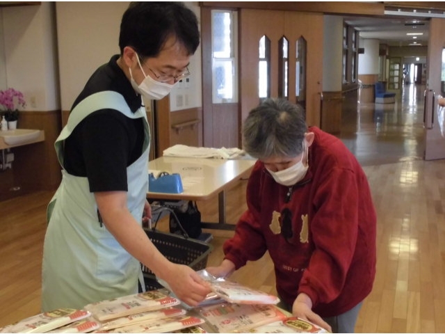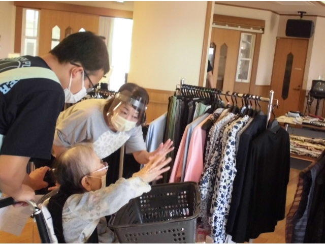 6月8日、夏物衣料販売を行いました。 肌着から洋服、靴までさまざまな衣料がずらりと並びました。 「これはどうかな?」「あなたは若いからもっと明るい色が似あうわよ。」など利用者さん同士で話し合ったり、じっくり選ばれたり…楽しいお買い物ができたようです。