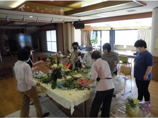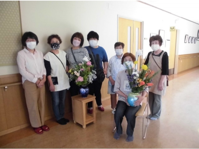 6月8日、ボランティア共和グループ様のご厚意でお花を生けて頂きました。 2階から階段で降りてくるとお花のとても良い香りが広がっていました。見渡すと苑内のいたるところに色彩豊かな季節のお花が飾られていました。 「アジサイの季節ですね。」「とてもきれいです。」「贅沢な気持ちになります。」など利用者さんや職員から喜びの声がたくさん聞こえてきました。