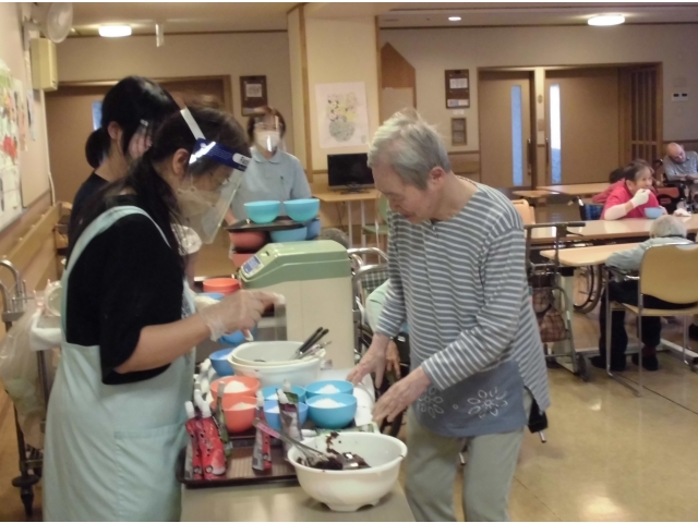 始まる前は、職員に味は何でもいいから適当に決めて。と言っていた方も、普段控えめの方も、目の前の氷とシロップを見て「これがいい!」などと自分で決めていました。
