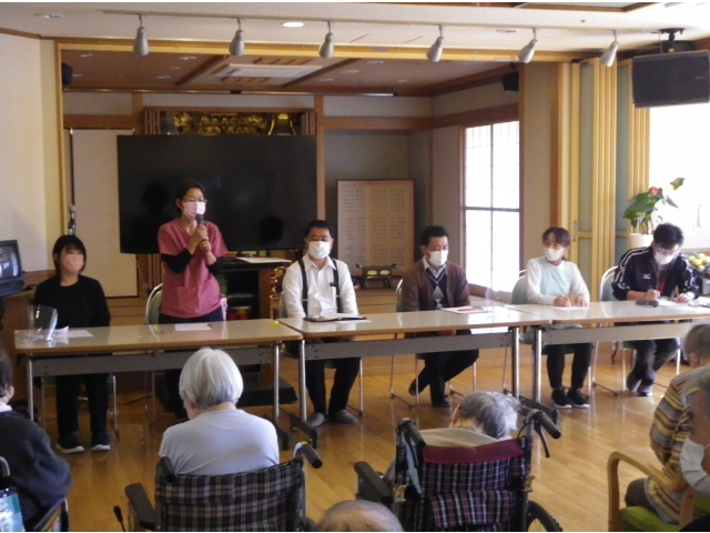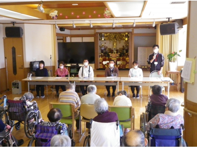 10月11日、利用者懇談会を行いました。 1丁目の方、27名に参加していただき、貴重な意見を頂戴しました。利用者の方に、毎日が安心して穏やかに生活していただけるよう職員一同努力してまいります。