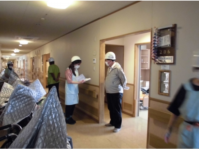 10月25日(火)午後1時半から、夜間に火災が発生したことを想定した避難訓練を実施しました。 今回は2階のご利用者様の一部を対象とし実施しました。 夜間は少ない人数の職員で避難誘導を行わなければなりません。 今後もいざという時のために、定期的に訓練を行っていきます。