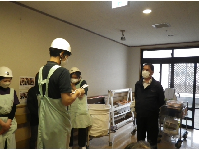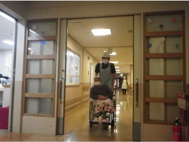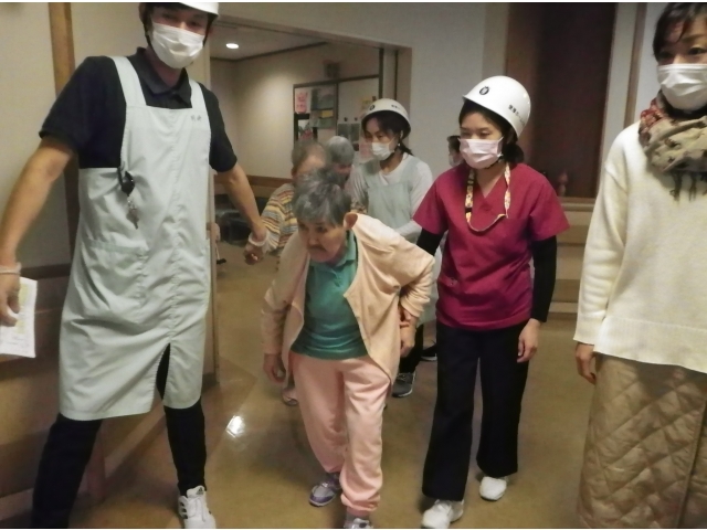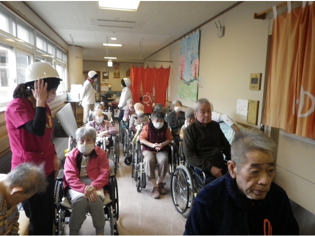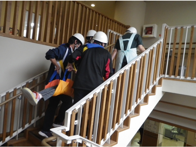 11月22日(火)午後1時半より、風水害訓練を実施しました。 これは、非常に激しい豪雨により、北側の山が崩れ、大量の土砂が1階に流れ込んでくる恐れがあることを想定し、1階から2階へ避難する訓練です。 また、停電によりエレベーターが使用できないことも想定し、簡易担架を使って2階へ上がる訓練も行いました。 最近では異常気象が頻発しています。普段から訓練を積み重ねていきます。