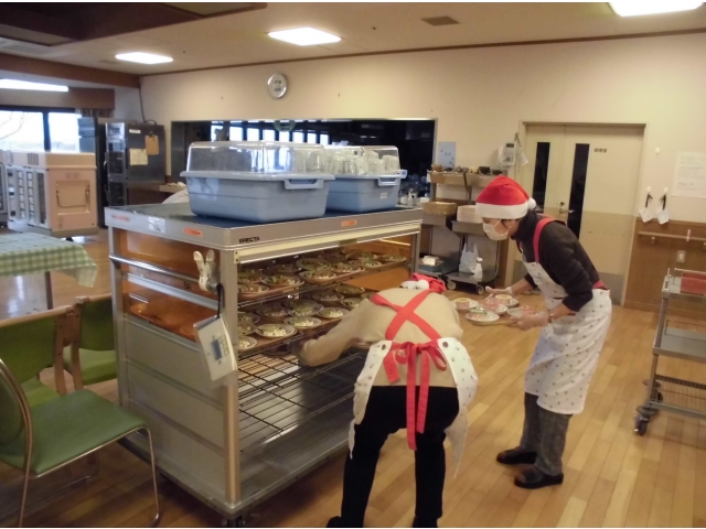 会場の食堂も、しっとりとしたクリスマスソングをBGMにしました。