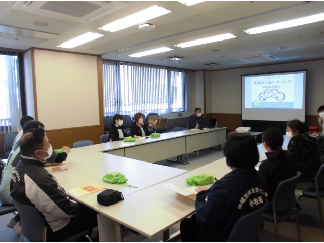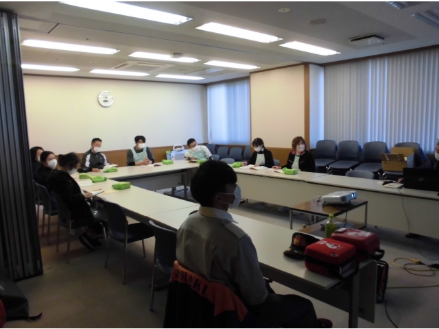 12月28日(水)に、小牧消防署の職員2名に来苑いただき、AED研修を実施しました。 会場が密にならないよう、2回に分けて、それぞれ1時間程度実施しました。 緊急時に使用するものですので、いざという時に対応できるよう、今後も継続的に訓練を実施していきます。