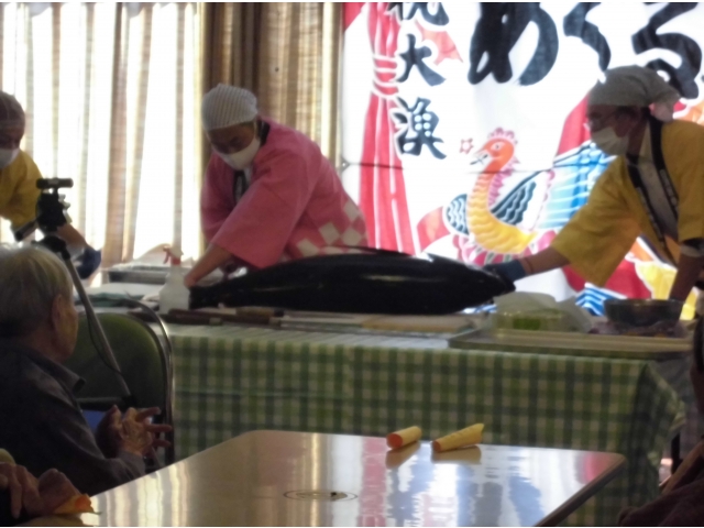 2月22日、寿司まつり&まぐろの解体ショーを行いました。