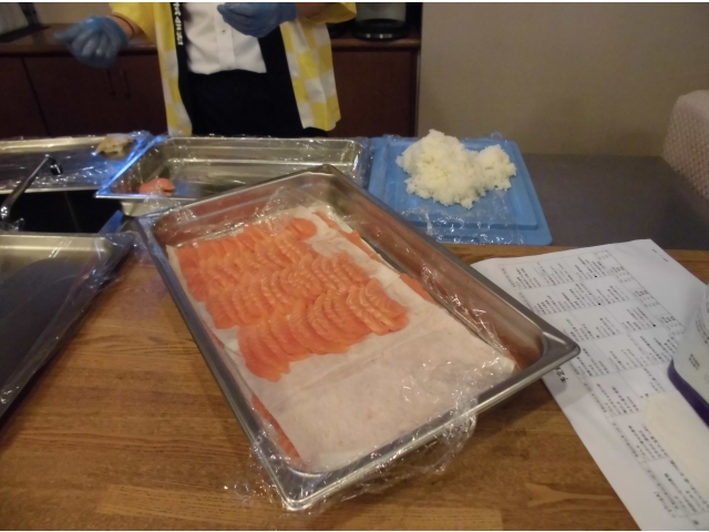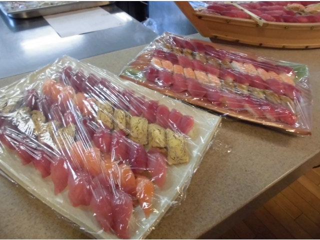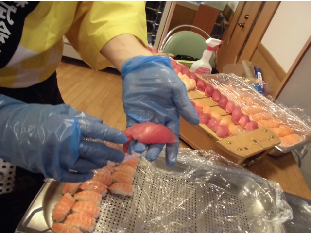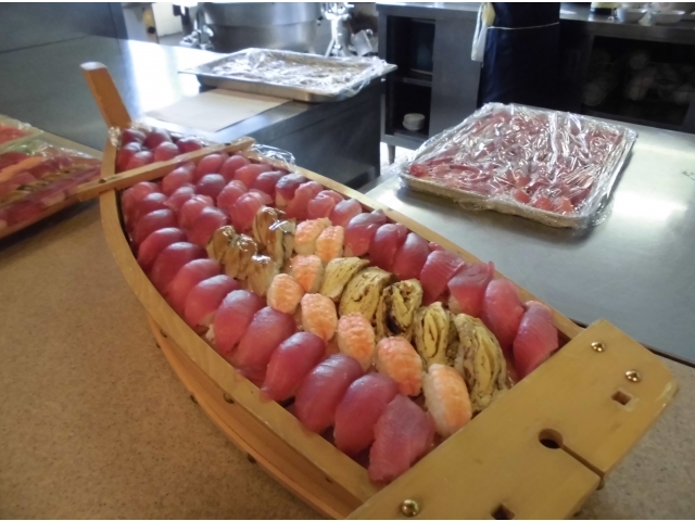 まぐろの解体の余韻に浸っている間に寿司職人さんが先程解体したまぐろを手際よく握って準備を進めます。
