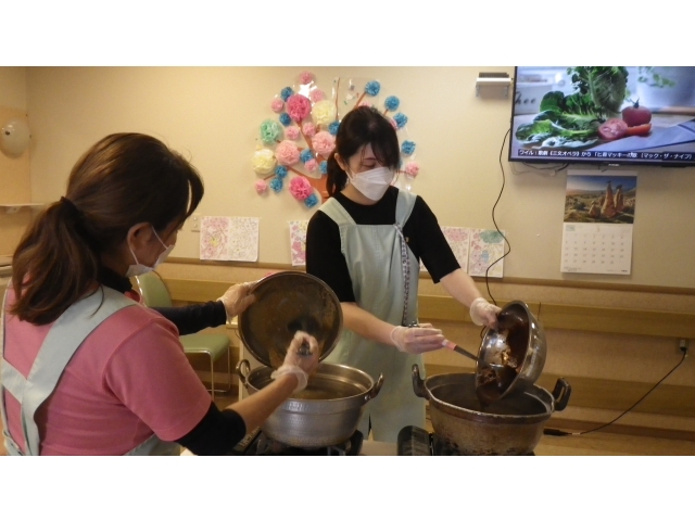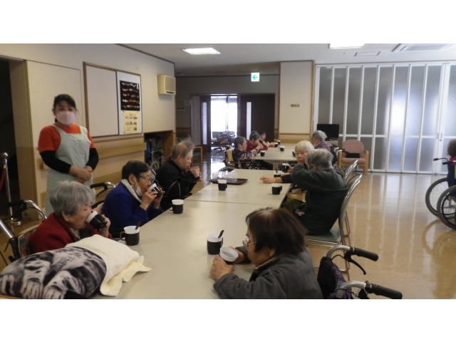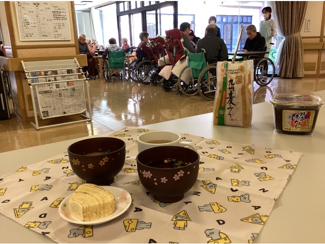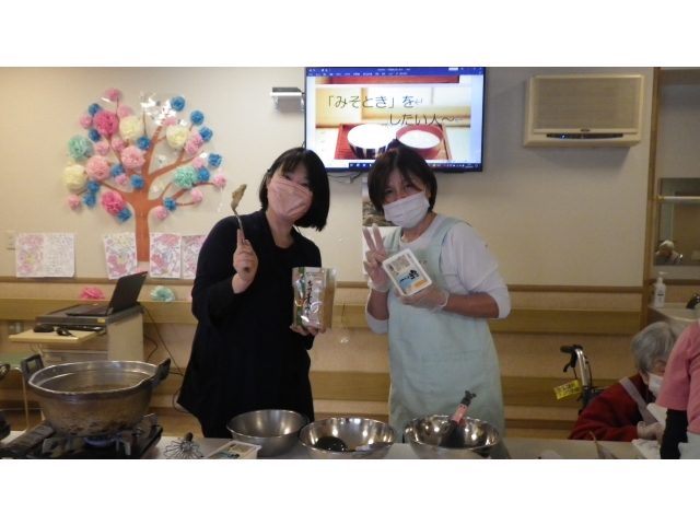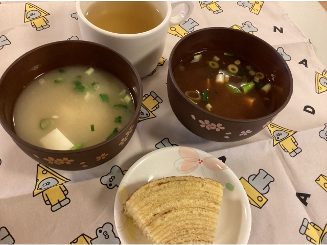3月15日、1丁目ではお楽しみ会としてお味噌汁を作り、味噌汁の香りや味を感じて幼少期の頃飲んだお味噌汁を思い出していただきました。