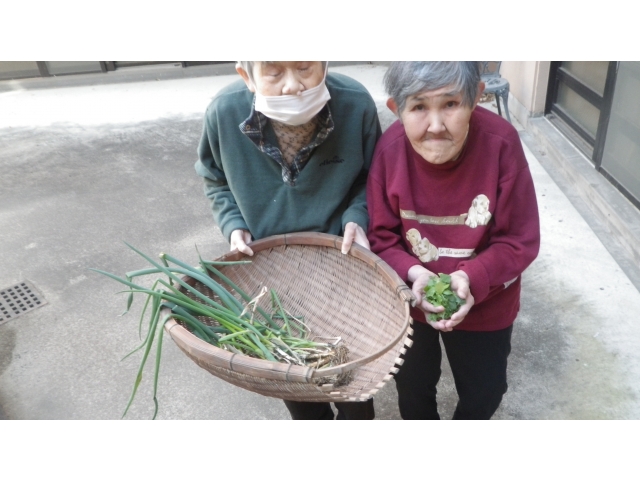 ネギとみつばは、1丁目の中庭で育てていたものです。何日も前から、味噌汁に入れると美味しそうね。と皆さん楽しみにされていました。
