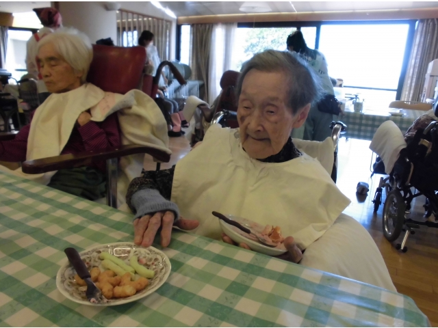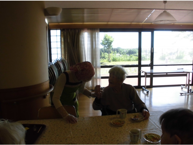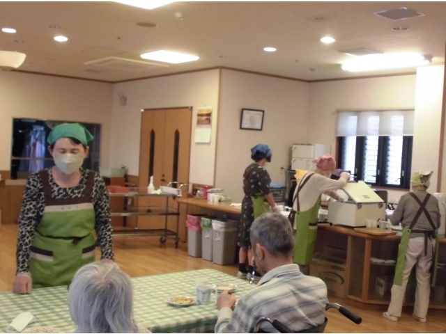 5月24日、ボランティアあかり様の協力のもと喫茶を開店しました。 本日の喫茶メニューは、➀ロールケーキ2種盛り(鳥取県産すいか味、国産栗味) ➁練乳苺のムースケーキ ③あじさいゼリー飲み物 ➀コーヒー ➁紅茶 ③ココア それぞれホットorアイスから選んでいただきました☕ 今回は、2丁目2番地は食堂、3丁目はフロアで実施したため、いつも以上にゆったりと過ごして頂きました。