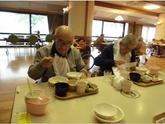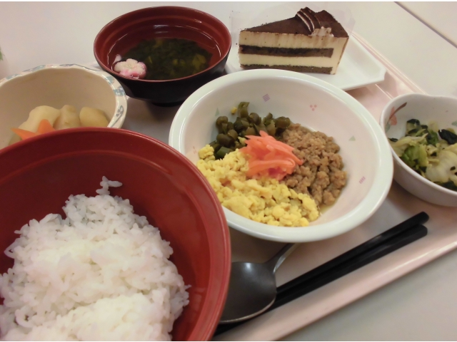 6月2日、誕生会を行いました。 苑長より挨拶のあと、誕生月の方へ色紙をプレゼントし、ノンアルコールビールやりんごジュースで乾杯を行いました。 お待ちかね誕生会食は、三色丼、じゃがいも含め煮、二色和え、すまし汁、ティラミスケーキでした。いつもより大きなケーキに皆さん大喜びです。「わー嬉しい♡」「美味しいわね。」「全部食べれるかしら?」ペロリと完食されていました (*^-^*)