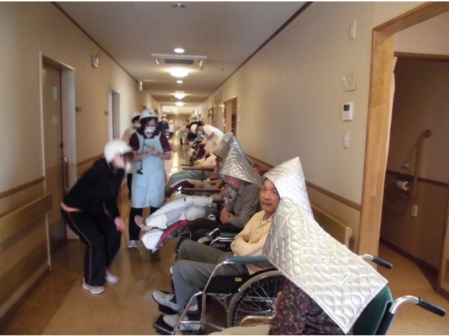 6月27日、2丁目2番地の利用者さんを対象に、昼間の火災を想定した防災訓練を実施しました。職員の誘導に従って全員が無事落ちついて避難することができました。日頃から訓練を重ね、非常時に備えていきたいと思います。